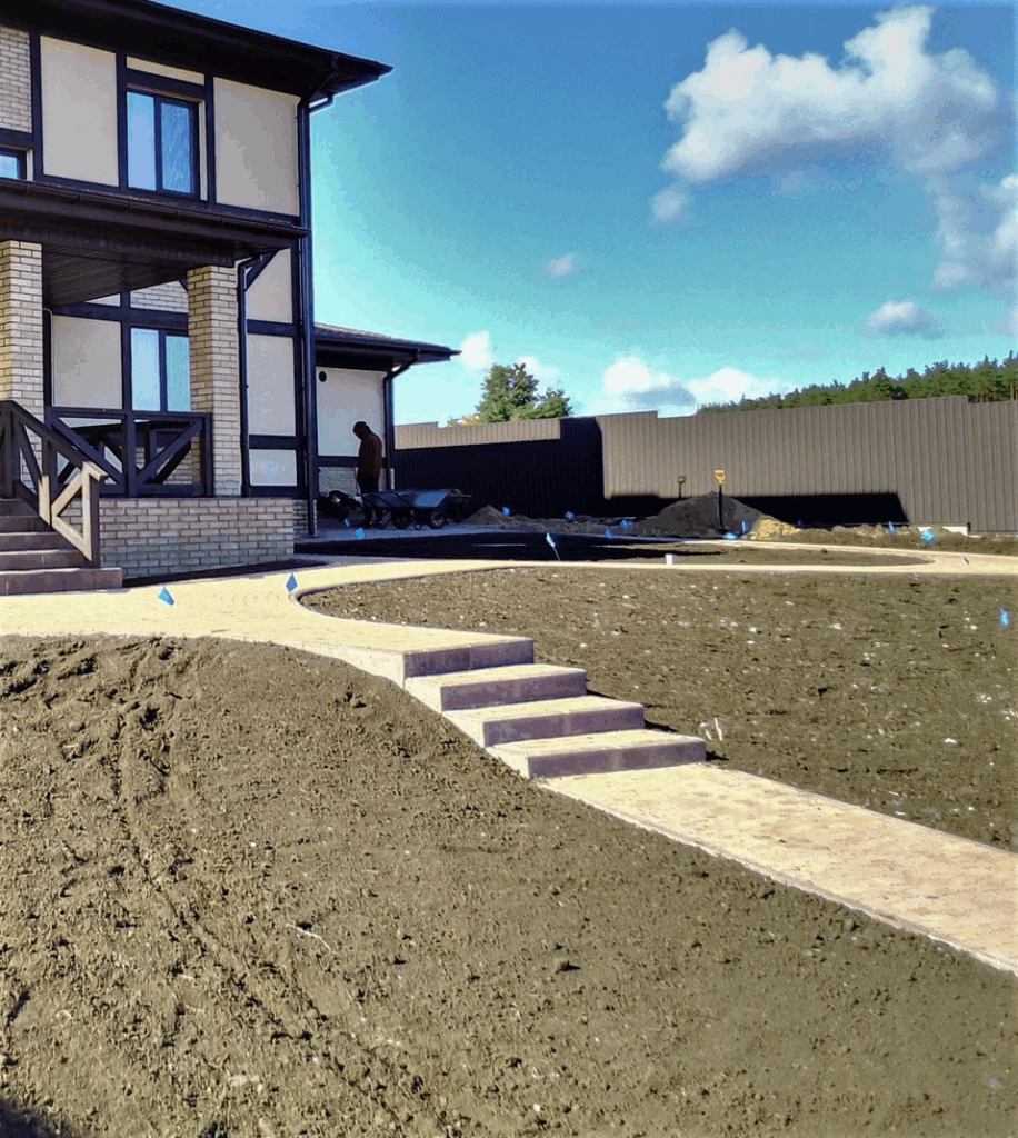 Після їх будівництва переходять до мощення доріжок і паралельно або після рослинності.