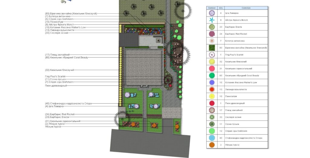 Проект озеленення ділянки без перепаду висот буде коштувати від 4000,00 грн. за 100 м2.